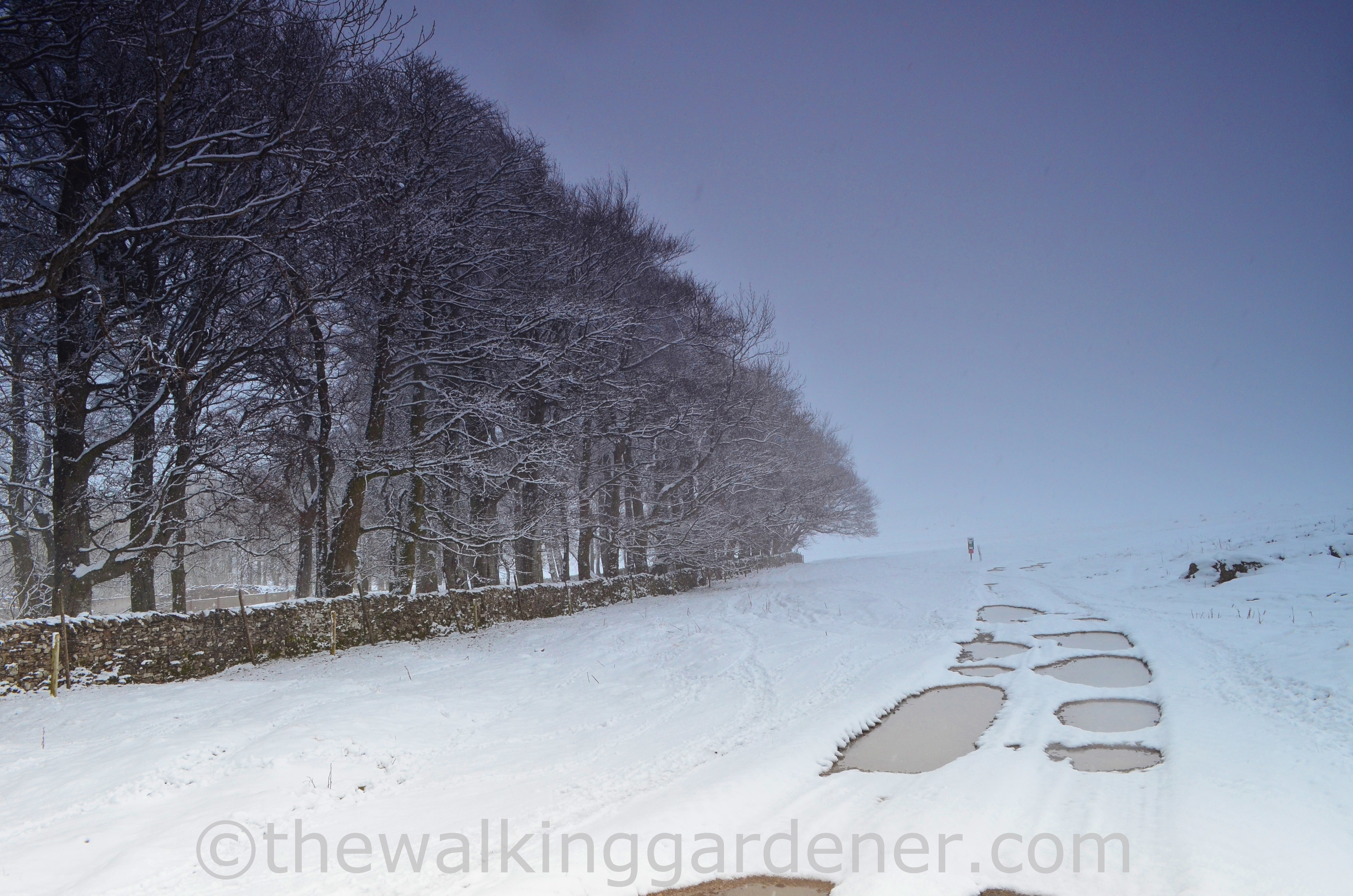It was still snowing as we crossed a C2C milestone – the M6. Standing on the footbridge was smugly satisfying: we had completed approximately one-third of the walk (as the crow flies that is, actually more in foot-slogging miles).
