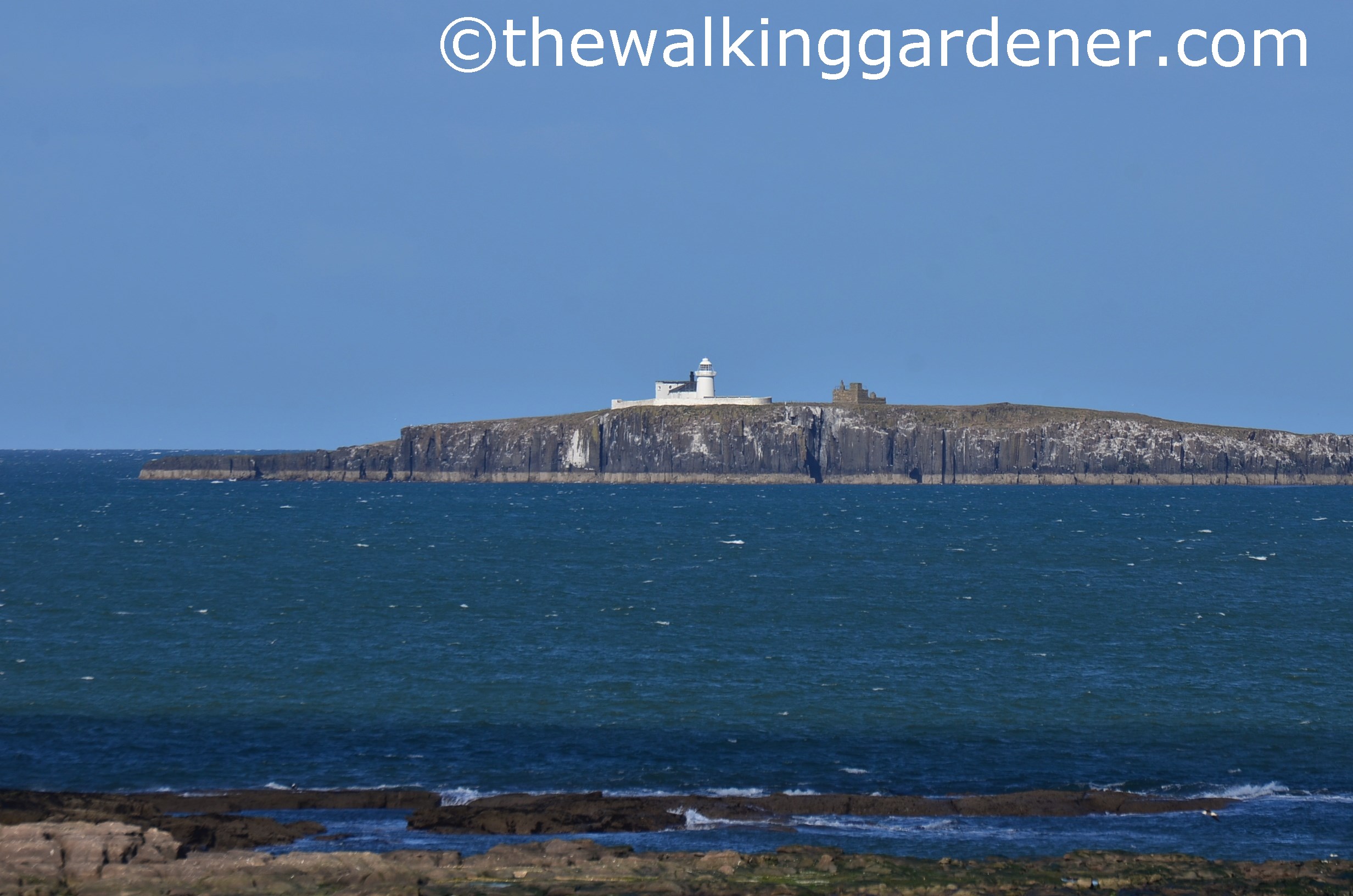 Off to our right lay the Farne Islands with the largest – Inner Farne – closest. I lied in my last post saying that Dunstanburgh Castle sits on the last outcrop of the Whin Sill: the final vestige is actually the Farnes. (This is the same rocky escarpment that Hadrian’s Wall clung to for so many miles before I started on the St Oswald’s Way). Boat trips from nearby Seahouses run out to the islands during the summer – a trip I’d long dreamed of. When, in July 2015, I finally made the voyage to the huge raucous bird colonies it was a gold star day. (There’s an account of that trip and the wildlife I saw – here).
